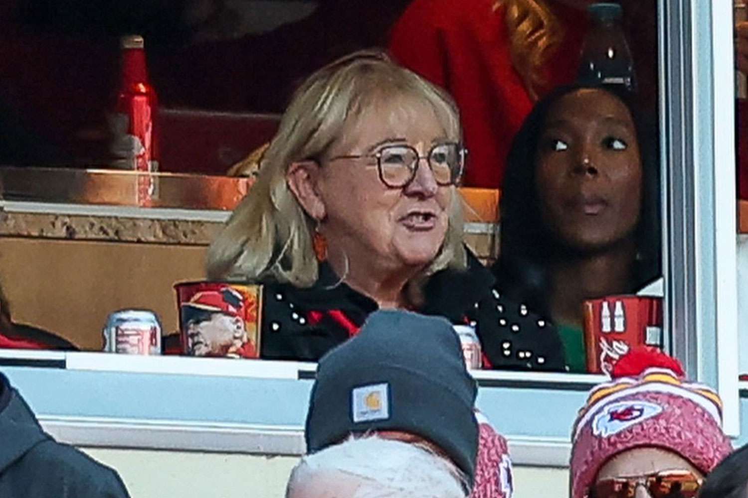 Donna Kelce opened up about the leather pants she wore to the Chiefs-Raiders game on Nov. 29 in an exclusive interview with PEOPLE at Arrowhead Stadium. She joked, ‘There’s a party in the back,’ referring to the pants’ combination of fabric and leather materials.
