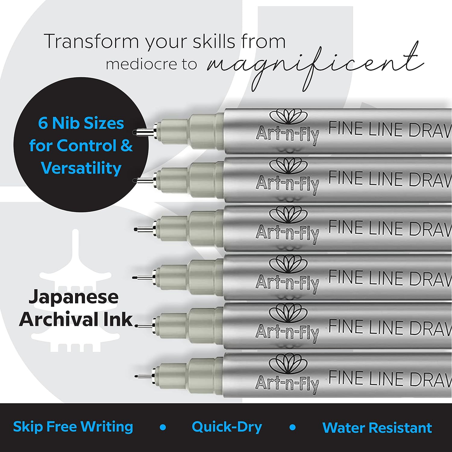 - PRECISION IN DETAILS: Achieve perfect lines in your drawings with Art-n-Fly Black Fine Point Pens. Our ink pens are perfect for all your creative needs, with a range of nib sizes from 0.05mm to 0.8mm.