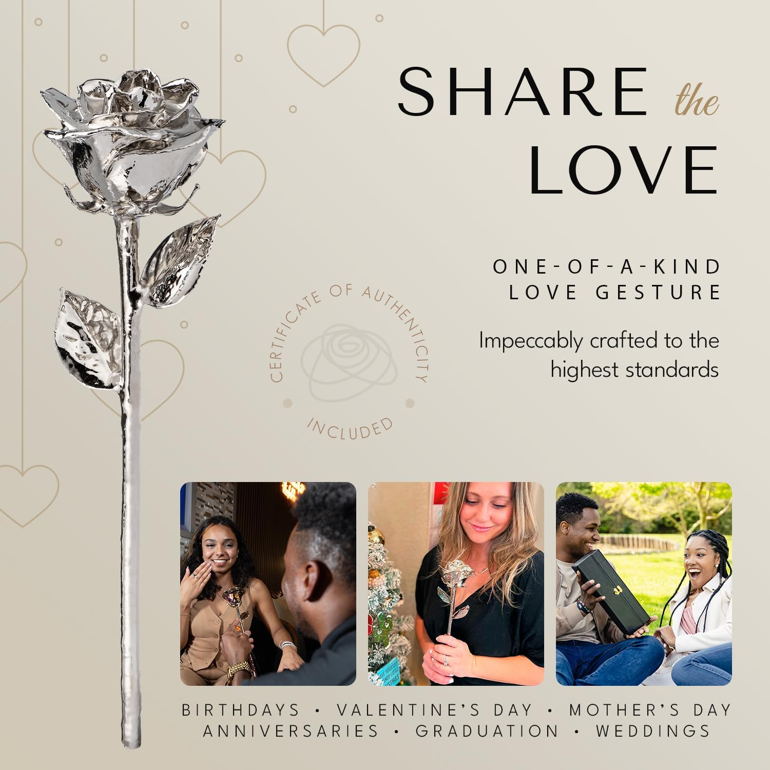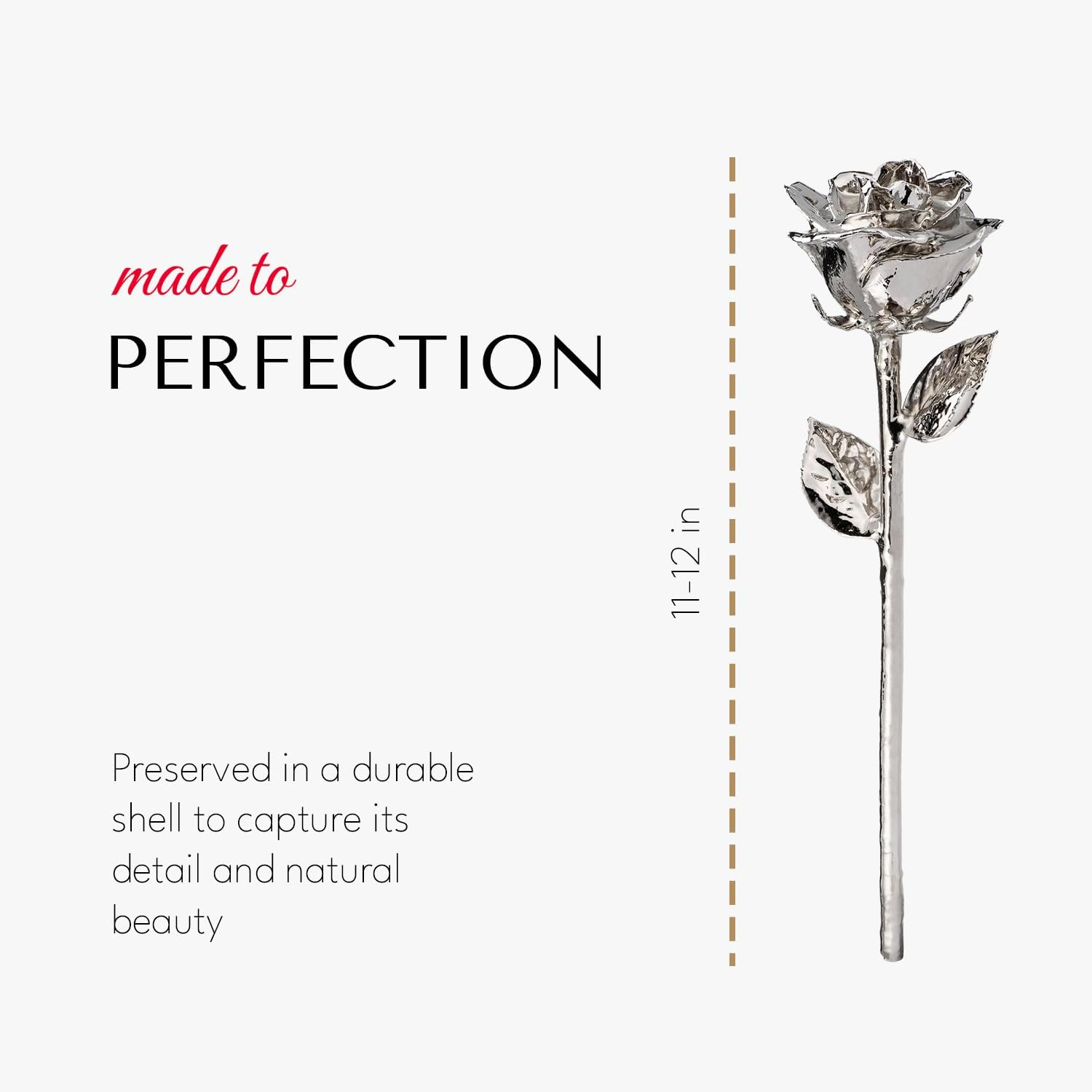 - PURE DETAIL, PRESERVED FOREVER: Our process and style are unique. Our skilled artisans preserve the natural petals, leaves, sepals, and stems, meaning no two roses are alike. Cheap knockoffs are mass-produced and use artificial elements that eliminate the natural look and charm. Our Platinum Forever Rose symbolizes purity, resilience, and enduring love.