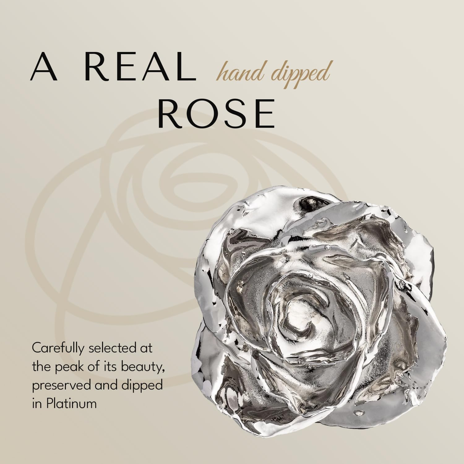 - REAL ROSE DIPPED IN PURE PLATINUM: Each Forever Rose begins as a real rose selected at peak bloom. It is carefully preserved to maintain its natural shape and beauty, and then dipped in genuine platinum for a breathtaking finish. This Platinum Forever Rose will never wilt or fade.